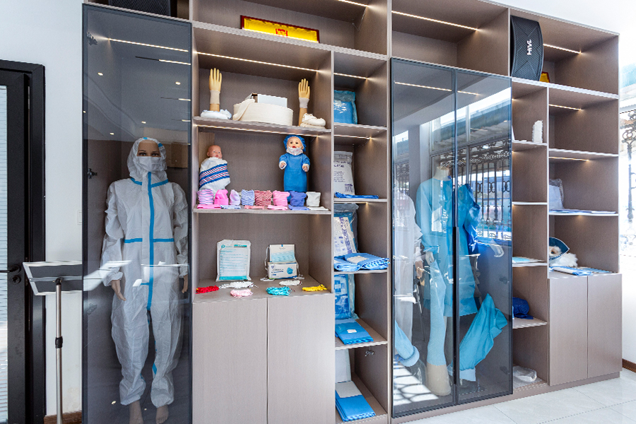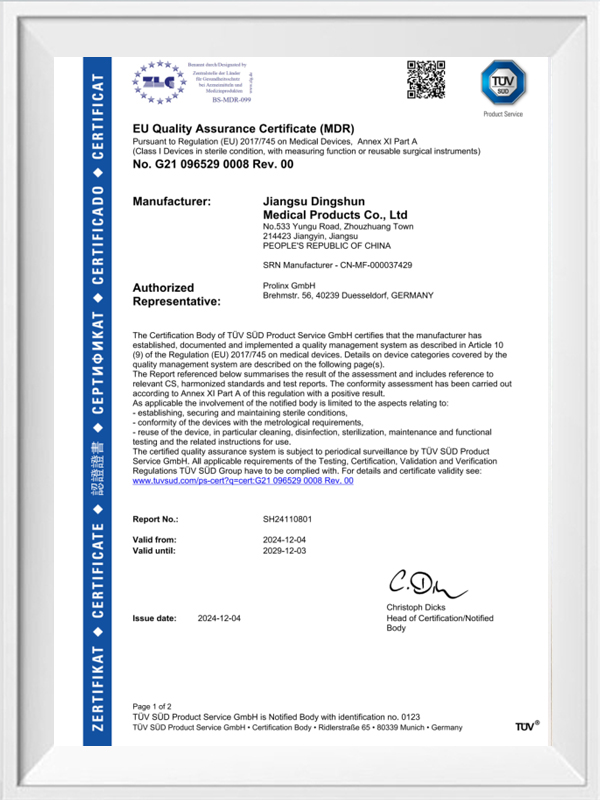 Jiangsu Dingshun Medical Products Co., Ltd ble etablert i 2002. Med utgangspunkt i strikkede mansjetter, er Dingshun Medical dedikert til produksjon og utvikling av medisinske engangsartikler. I dag dekker produktene fra Dingshun en rekke medisinske forsyninger som strømpenett, kirurgisk pakke, bandasjer.